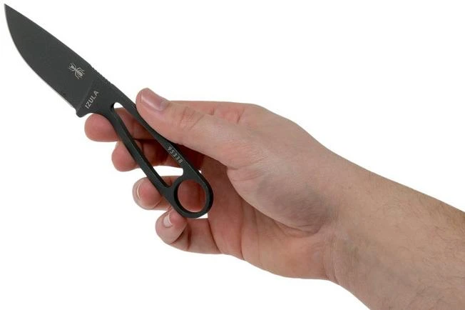 The ESEE Izula is named after an aggressive ant from the Peruvian jungle. This is to emphasize that despite its size you shouldn’t underestimate this knife. The ESEE Izula is a versatile fixed knife. It will easily find a place in a bag or backpack or can be carried as a neck knife. Despite its size you can easily hold it. At the back you will find a large opening for your little finger to make sure you have an excellent grip. You could, of course, also make a paracord handle to increase the grip. And if you prefer a real handle ESEE also delivers those as an accessory. This, of course, will make the knife a little thicker.