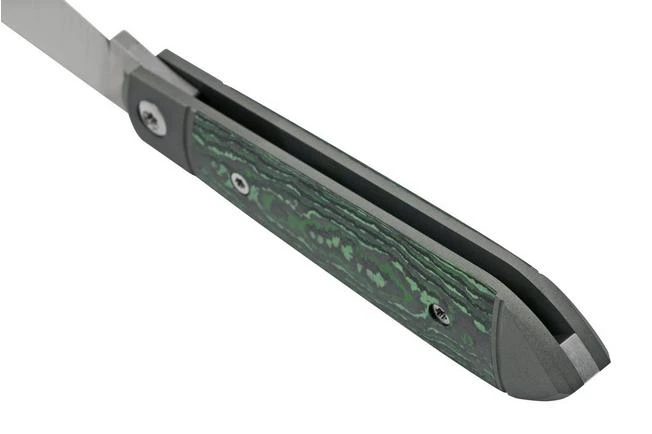 With the Jack Wolf Knives Low Drag Jack Fat Carbon Jungle Wear, Jack Wolf once again releases a great traditional pocket knife. This time with a Teardrop pattern, also called Bullet End. The knife is enhanced with a leaf-shaped blade with a relatively large belly, which is what makes this knife perfect for cutting tasks like eviscerating small game. The exceptional micarta or carbon fibre inlays give the knife its chic and modern twist. The long titanium bolsters are an integral part of the liners. An extraordinary and bold choice.