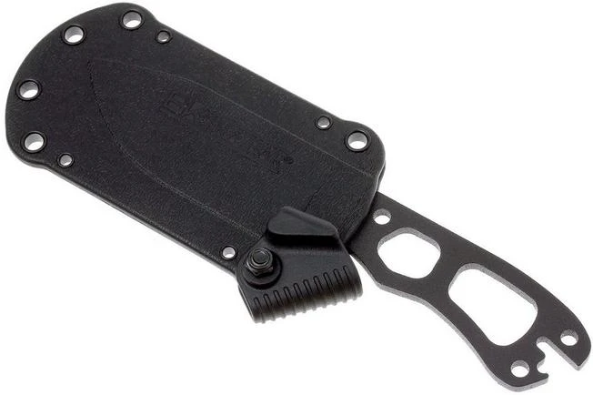 The KA-BAR BK11 neck knife is the result of a collaboration between knife designer Ethan Becker and KA-BAR. The knife is very light in weight, but because of the width of the blade still very sturdy. The blade is made of 1095 carbon steel, which doesn’t make it stainless. Luckily, the blade has a black coating making maintenance a lot easier.