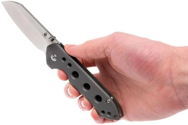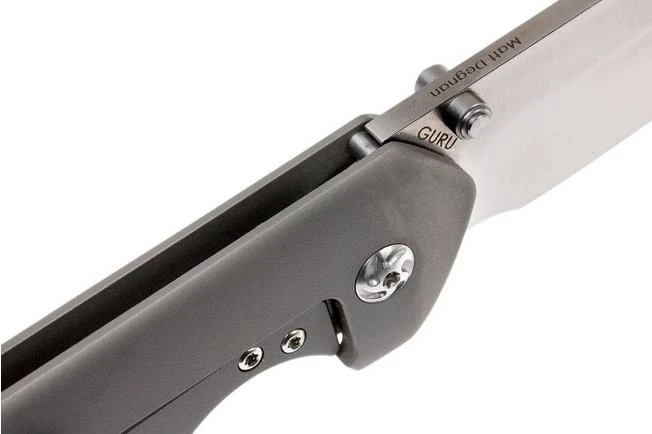 The Kizer Guru is a stunning gentleman’s knife, designed by Matt Degnan. It is a sleek, stylish pocket knife with a titanium frame and an S35VN steel blade. The sheepsfoot blade shape makes it an ideal pocket knife for many uses, from opening packaging to peeling an apple. The pivot has ceramic ball bearings, so it will keep working perfectly for many years to come. The solid frame lock has a steel element to prevent wear and tear in the long run. When you choose a Kizer Guru, you know that it will last for years.