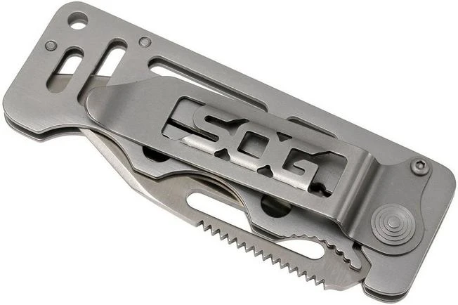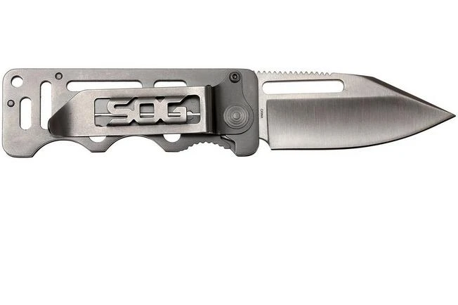 The SOG Cash SOG Cashcard – EZ1-CP pocket knife is a compact and practical knife for everyday use. It has a beautiful skeletonized handle, which not only looks tough, but also cuts down on weight. The blade is made from razor-sharp 8Cr13MoV steel. This is a stainless steel that is very easy to sharpen. It opens nice and smoothly thanks to the thumb hole. The handle is made of stainless steel and is therefore durable and very lightweight. When opened, the blade is locked by a solid liner lock. Slide the liner lock to the left to easily close the knife. The pocket clip can be used to secure paper or cards, such as cash or an identity card. Very handy when you want to go out without taking your whole wallet with you. In combination with its compact size, this makes it an ideal EDC pocket knife!