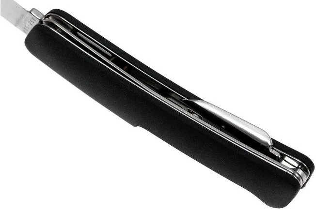 The Swiza D02 is a contemporary knife inspired by classic Swiss pocket knives. The first thing you’ll notice is the knife’s modern, ergonomic design. The innovation is evident when you look at the lock. You unlock the knife by pressing down the logo on the handle. Swiza has also taken left-handed users into account with a cut-out in the blade that can be used from both sides.